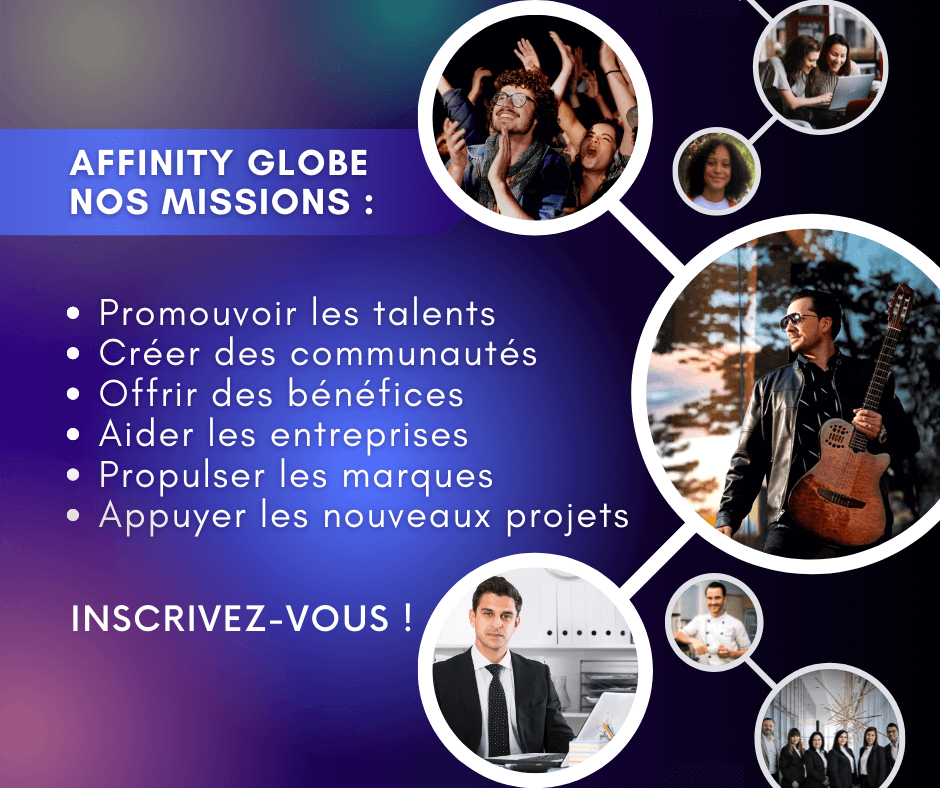 Depuis 2009, Affinity Globe, propriété Intellectuelle de l’Université Laval de Québec-Canada, élabore des concepts de services avec des experts dans plusieurs domaines technologiques, sociaux et commerciaux. Aujourd'hui, nous sommes fiers de vous offrir une plateforme de gestion multi-profils (Professionnels, commerciaux et publics tout en un) connectés à un moteur intelligent d’offres et de recherches qui fonctionne avec un système de référencement automatique pour capter les opportunités disponibles.